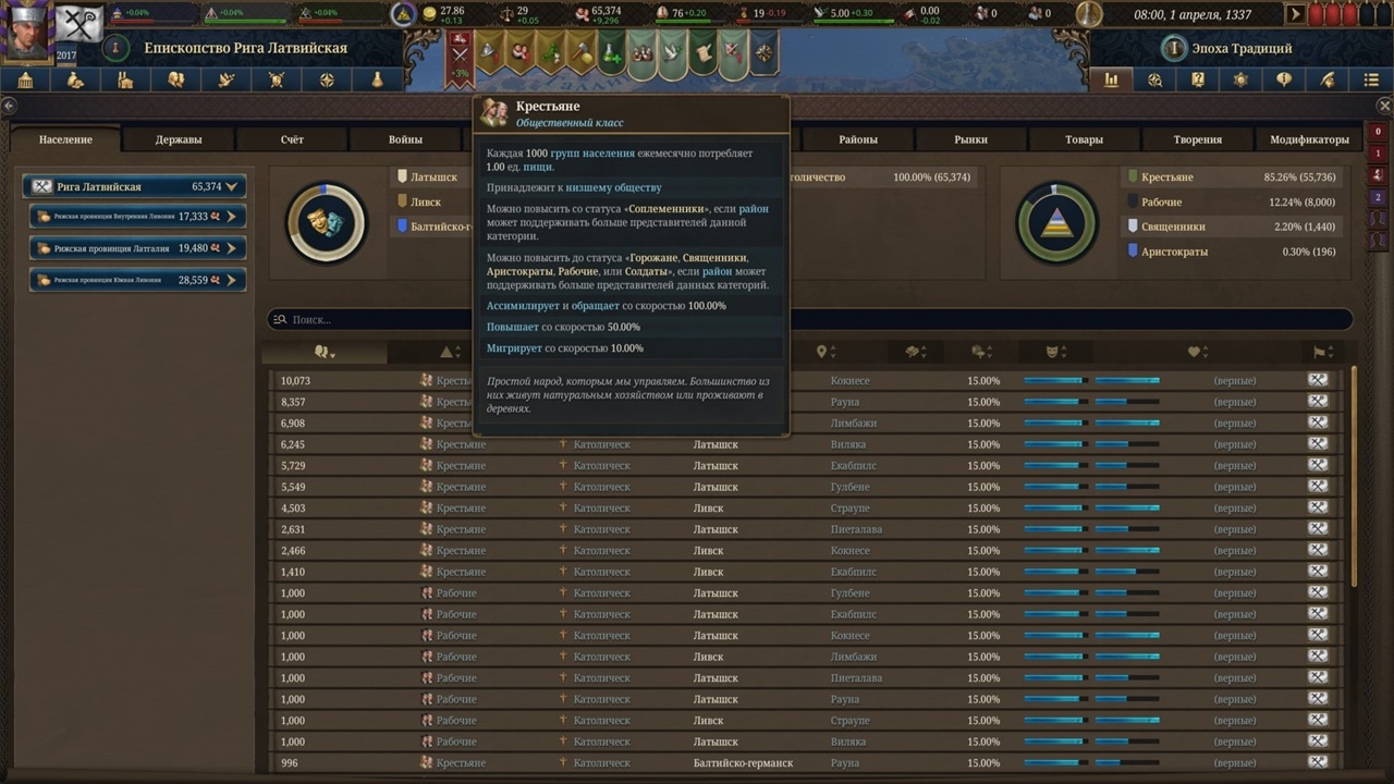 Геймплейная механика Europa Universalis V переосмысливает саму концепцию управления государством. Введена сложная система внутреннего управления, где игрок балансирует между интересами различных социальных strata — от крестьянства и городских бюргеров до аристократии и духовенства, каждое сословие обладает уникальными механизмами влияния и требованиями. Военная система теперь учитывает тактико-стратегическую глубину — от организации полевых армий и флотов до партизанской войны и кибернетических атак (в поздние периоды игры). Технологическое развитие происходит через систему "научных революций" — вместо постепенного накопления очков исследования игрок инвестирует в конкретные научные направления, создавая альтернативные технологические ветви развития. Особого внимания заслуживает новая система культурной динамики — распространение идей, языков и традиций формирует сложные культурные ареалы, влияющие на лояльность населения и международные отношения. Управление колониальными империями требует учета как метрополий, так и интересов колоний, которые могут развиваться в самостоятельные центры силы.
